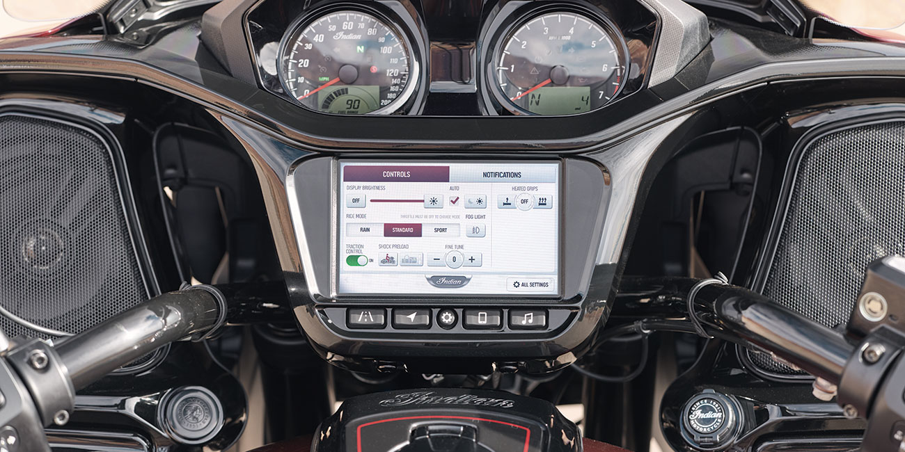 Das Indian Challenger 125 Jahre Jubiläumsmodell beweist, dass Leistungsführerschaft keine Theorie ist, sondern sich in der Geschwindigkeit zeigt. Ihre am Rahmen montierte Verkleidung, die schwarzen Oberflächen und der flüssigkeitsgekühlte PowerPlus-Motor mit 112 Cubic-Inch Hubraum werden durch sorgfältig handgemalte Details und 125 Jahre Jubiläums-Embleme ergänzt.